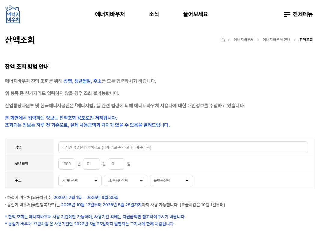 | 겨울 바우처 | 2025년 10월 1일 ~ 2026년 4월 30일 |