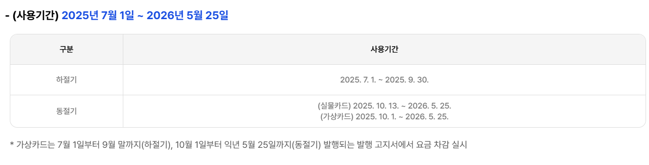 여름/겨울 각각 다른 금액과 사용 기한이 있기 때문이죠.